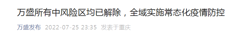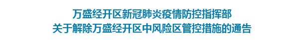 On the 25th, the Wan Sheng Economic Development Zone's new crown pneumonia's epidemic prevention and control headquarters issued a notice on lifting the control measures of the mid -risk zone of the Wan Sheng Economic Development Zone, as follows ↓↓↓