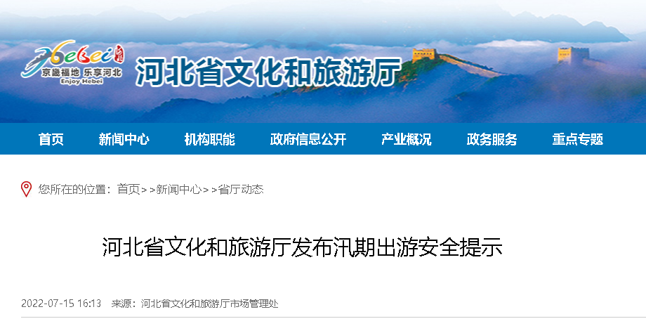 At present, Hebei Province has entered the main flood season. There are many rainfall and often accompanied by strong streaming weather such as short -term and heavy precipitation, short -term wind winds, etc. The risks such as floods and mudslides in mountainous tourism scenic spots and Yixiang Scenic Area are high. Risk increases. To this end, the Hebei Provincial Department of Culture and Tourism issued a security reminder of travel during the flood season, reminding tourists to prevent the risk of travel during the flood season.