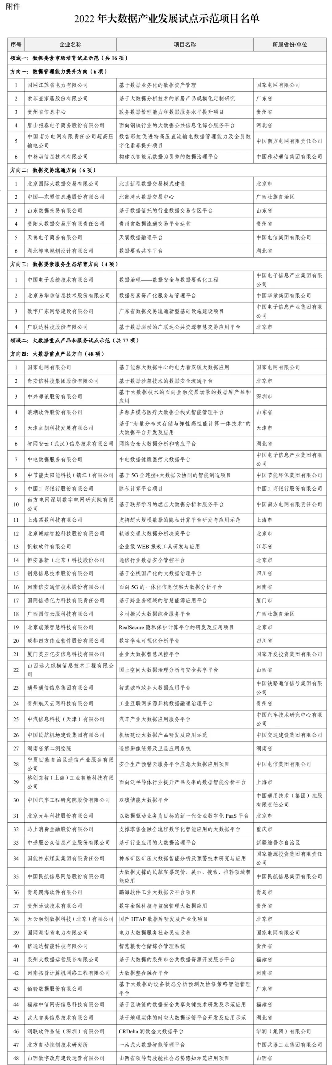 It is reported that the selection of the list of demonstration projects for the development of the big data industry is to implement the "Fourteenth Five -Year Plan" Big Data Industry Development Plan. After enterprise declaration, unit recommendation, expert review, online publicity, etc.List of Data Industry Development Pilot Demonstration Project.