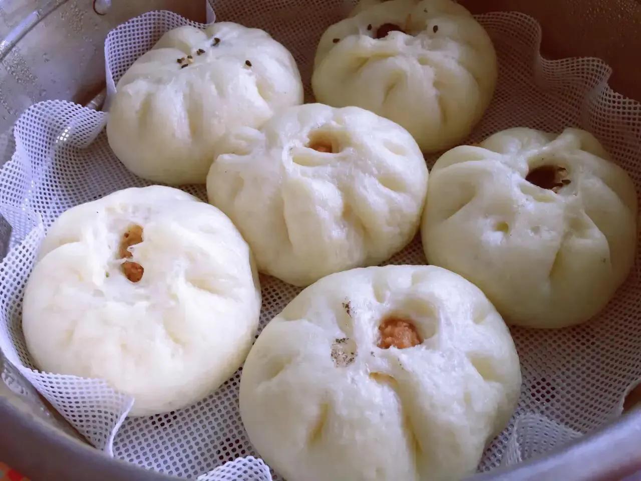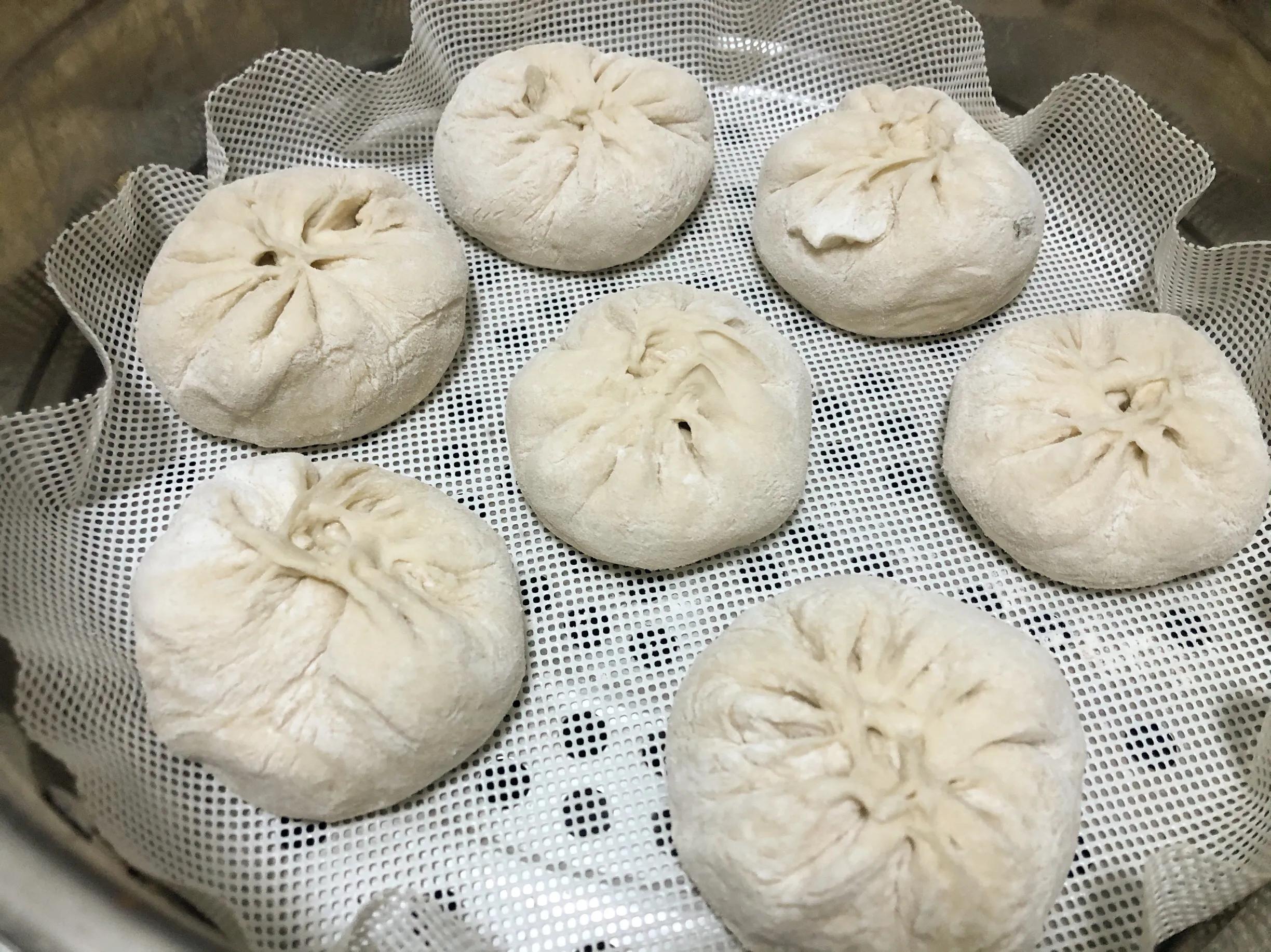 7. After wrap, cover the plastic wrap for the second fermentation, 30 minutes in summer, 1 hour in winter, put it in the steamer water and turn to low heat for 20 minutes, simmer for five minutes. it is done