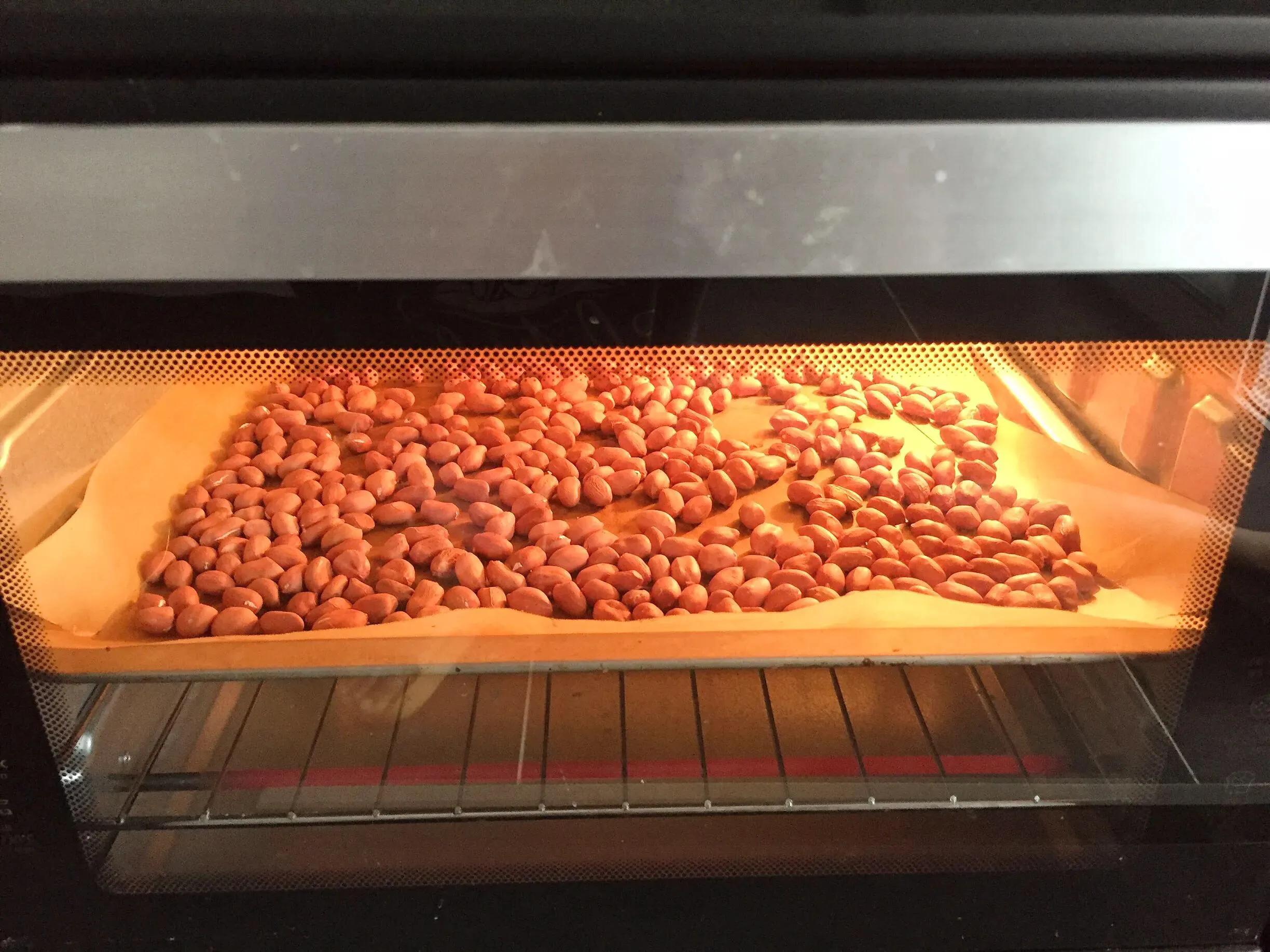 2. Then prepare the peanut filling, do not pour oil in the pot, add 300 grams of peanuts to fry, turn on low heat throughout the process, cool down when the surface is discolored, or bake in the oven at 140 degrees for 10 minutes.