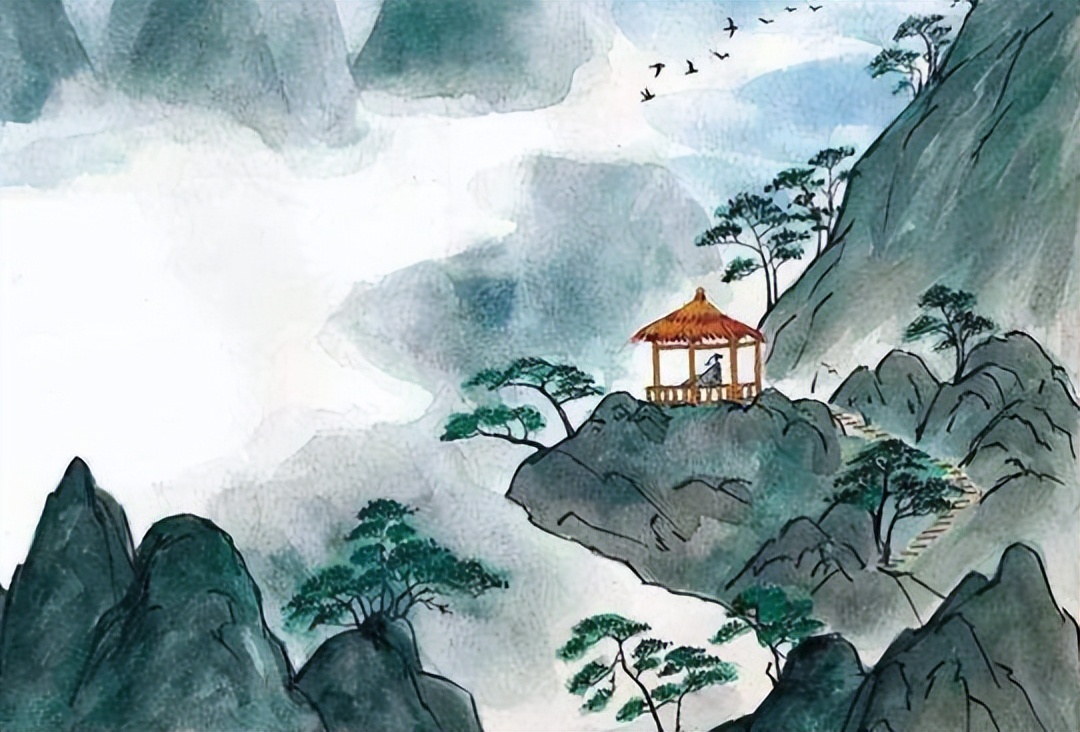 The beginning of the two sentences "The birds are all flying high, the lone clouds go alone", it is simplified lines and pictures: the poet sat alone on the mountain of Jingting alone, and saw that many birds went away, and slowly watched it. There is no trace, and only a lonely cloud also leaves leisurely.