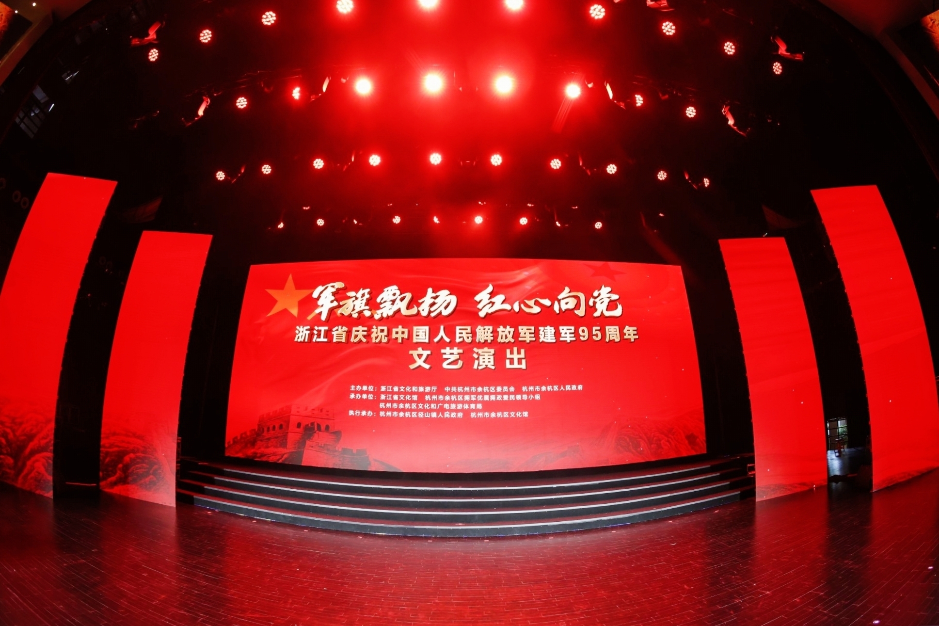 The flag fluttered to the party's literary performance to the party in Yuhang