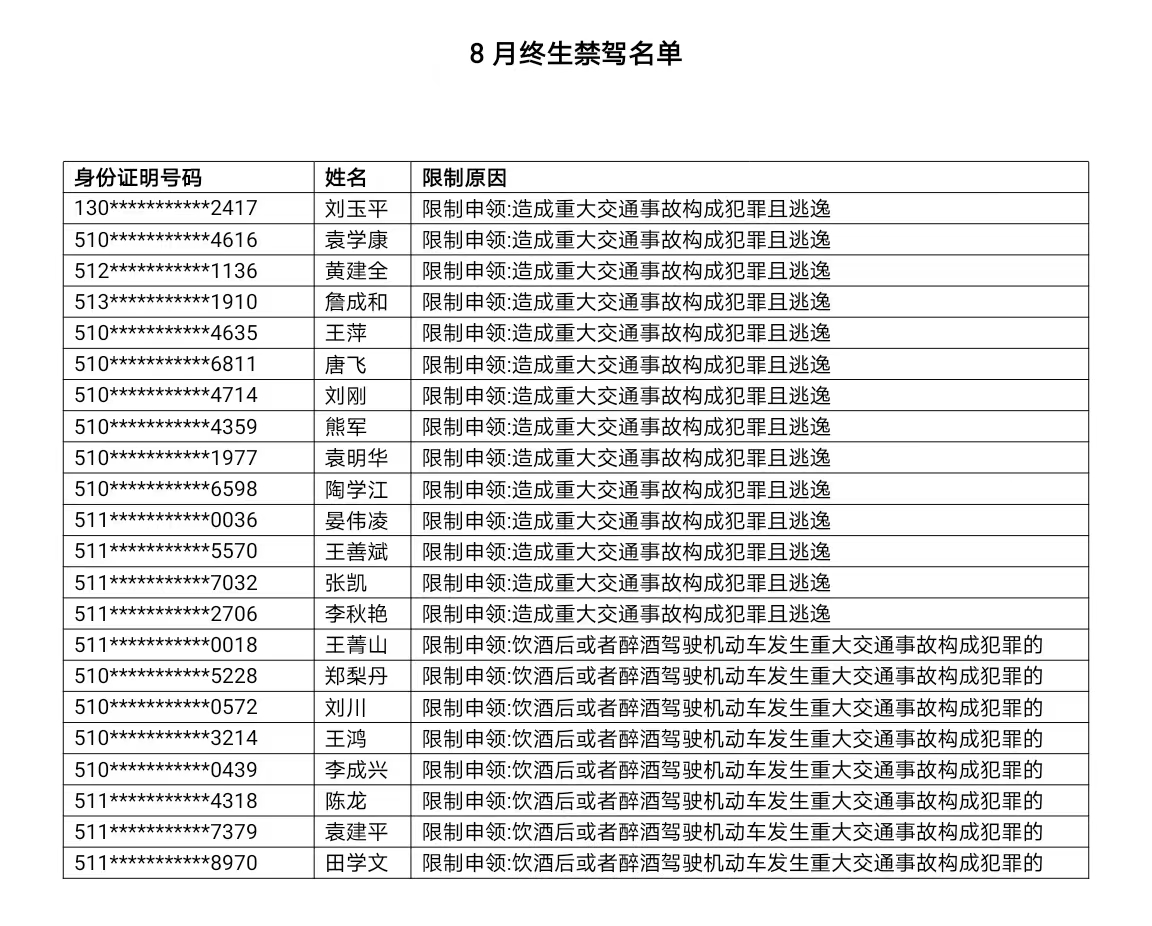 Sichuan Public Security Traffic Police announced that the youngest forbidden driving list in August was 18 years old.