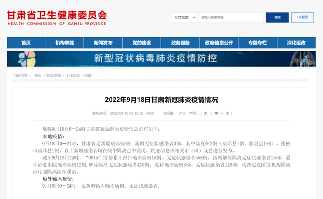 September 18, 2022, the epidemic situation of Xin Guan Guan Pneumonia in GansuThe ...