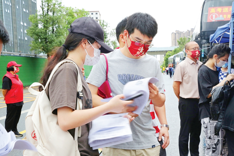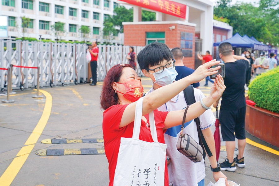 In addition, parents wearing red clothes and cheongsams outside each test site are also unique scenery during the college entrance examination. The mask printed with the words \"every test must pass\" filled the \"atmosphere\". \"The school pays great attention to the psychological guidance of students, and usually observes the students' emotions carefully, and provides warm care and encouragement.\" Go to the exam.