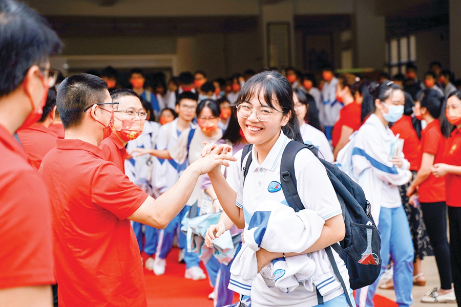 \"2022, one of the two\" \"The college entrance examination will win, come on!\" ... In the early morning of yesterday, in the third grade classroom of Hua Luogeng Middle School, the sound of refueling came one after another. Essence \"Admission tickets, ID cards, and test utensils remember to bring together.\" In the classroom, the teachers told candidates for the precautions for the college entrance examination to relax their mentality, light up, and send the \"gold list title\" to the candidates. Red envelope. At 8 am, candidates went out of the classroom, moved towards the door of success, and rushed to the examination room. The school leaders and teachers in the third grade are uniformly wearing red clothes and rows into two rows for candidates to send exams. \"Up, teenagers\", \"Come on college entrance examination, fight for dreams\", \"laughs to the college entrance examination, welcomes the future\" ... The teachers hold various inspirational standards to call candidates, and they are handled with candidates.