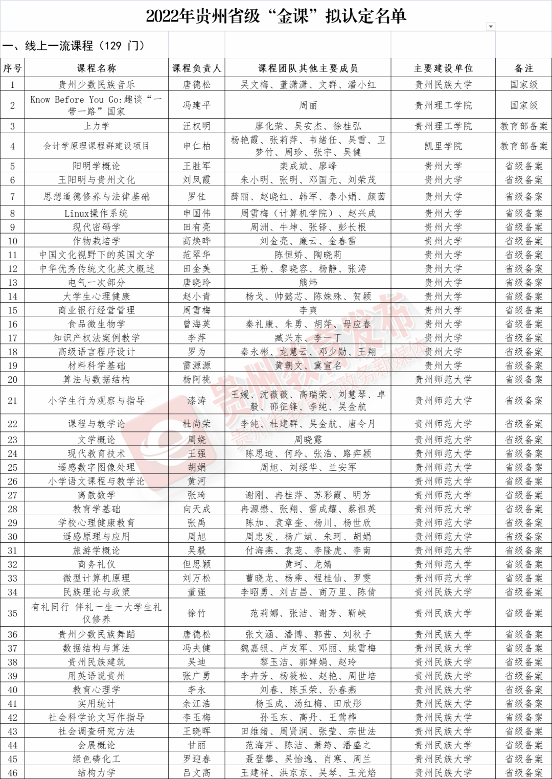 2022 Guizhou Provincial "Gold Class" to be determined list
