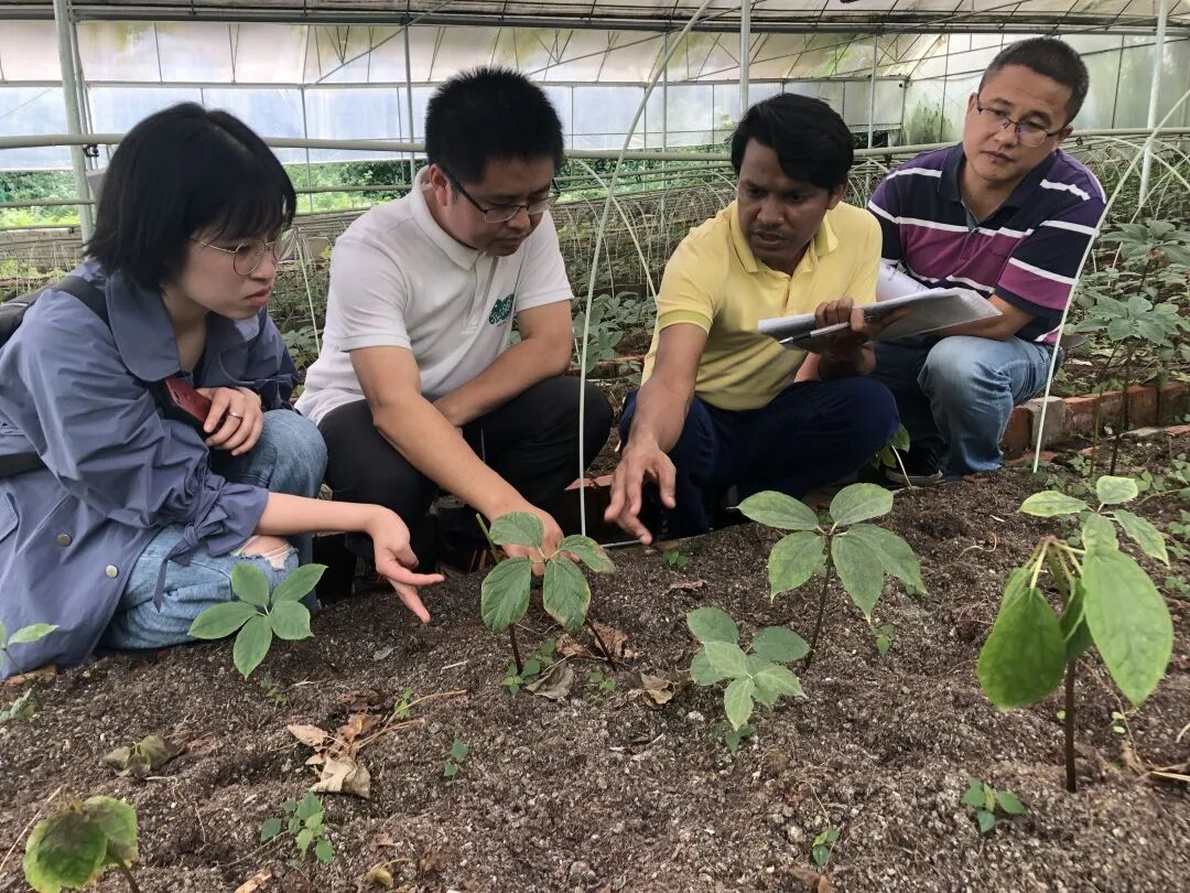 (Doctors accompanied by Bangladesh Botanology, who inspected the germplasm resource garden of the heavy building, the fourth from the right is Yin Hongxiang)