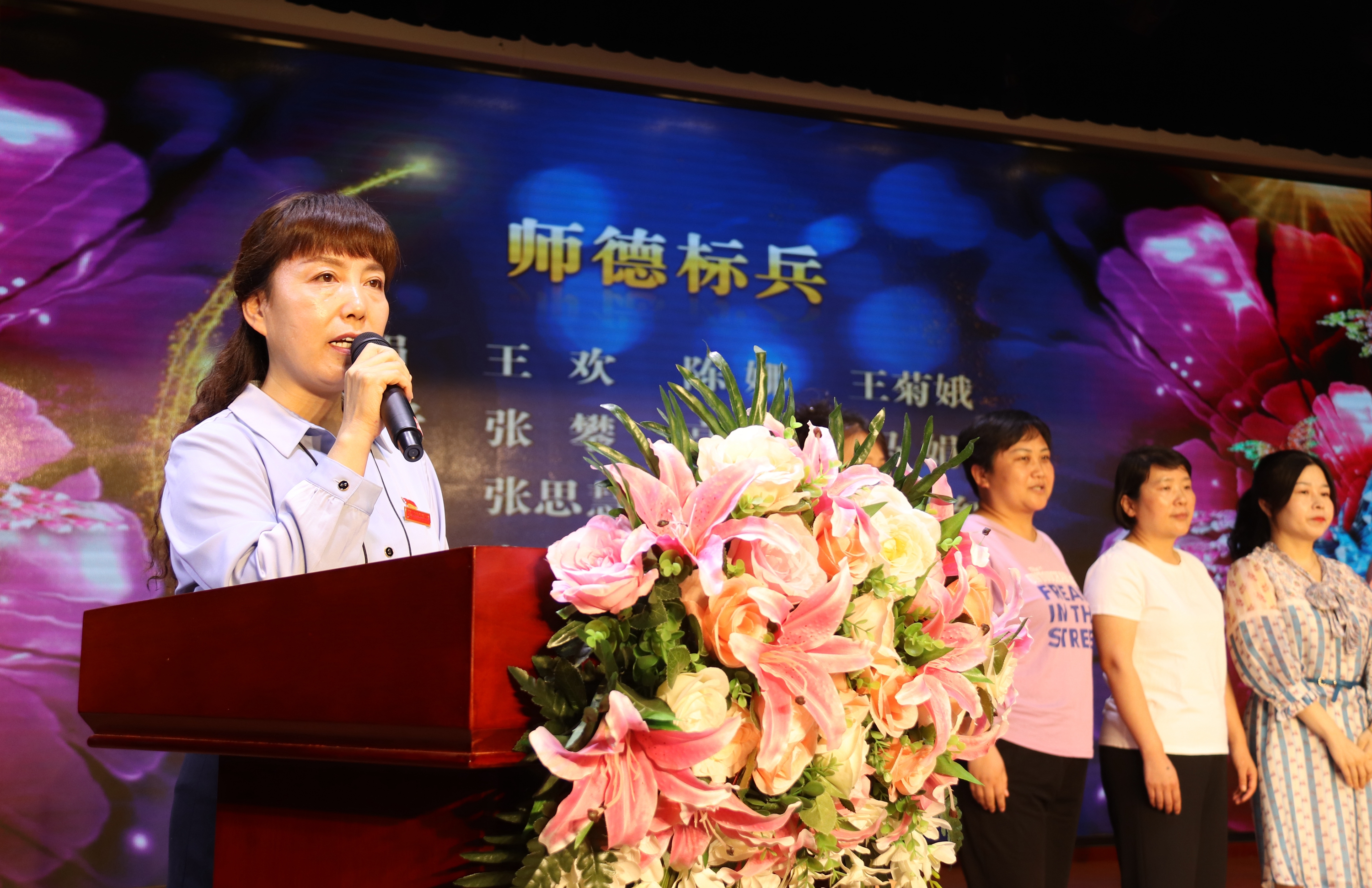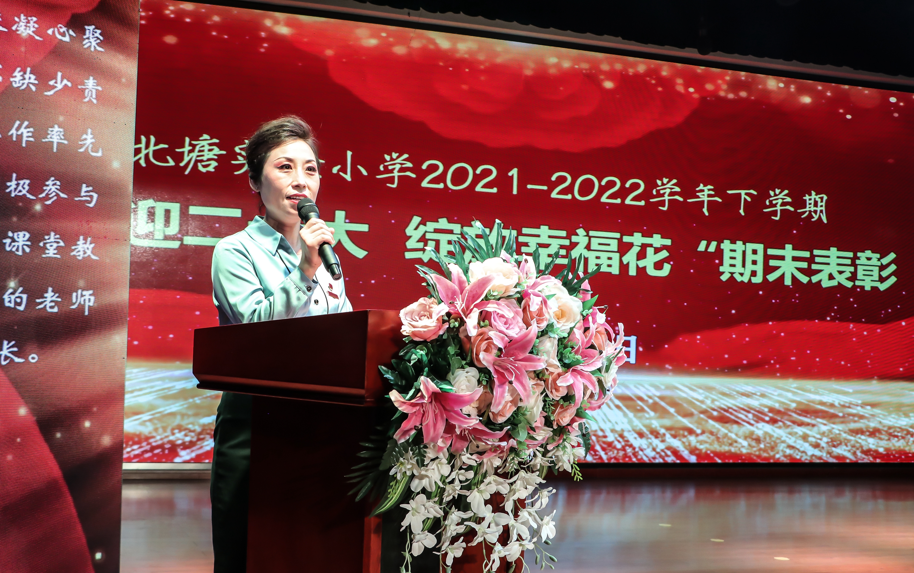 Vice President Liu Xian reads the list of "Outstanding Class Teachers", "Outstanding Grade Leaders", "Outstanding Teachers of the Association", and "Outstanding Teacher for Outstanding Teachers of Quality Education Classroom Activity Center"