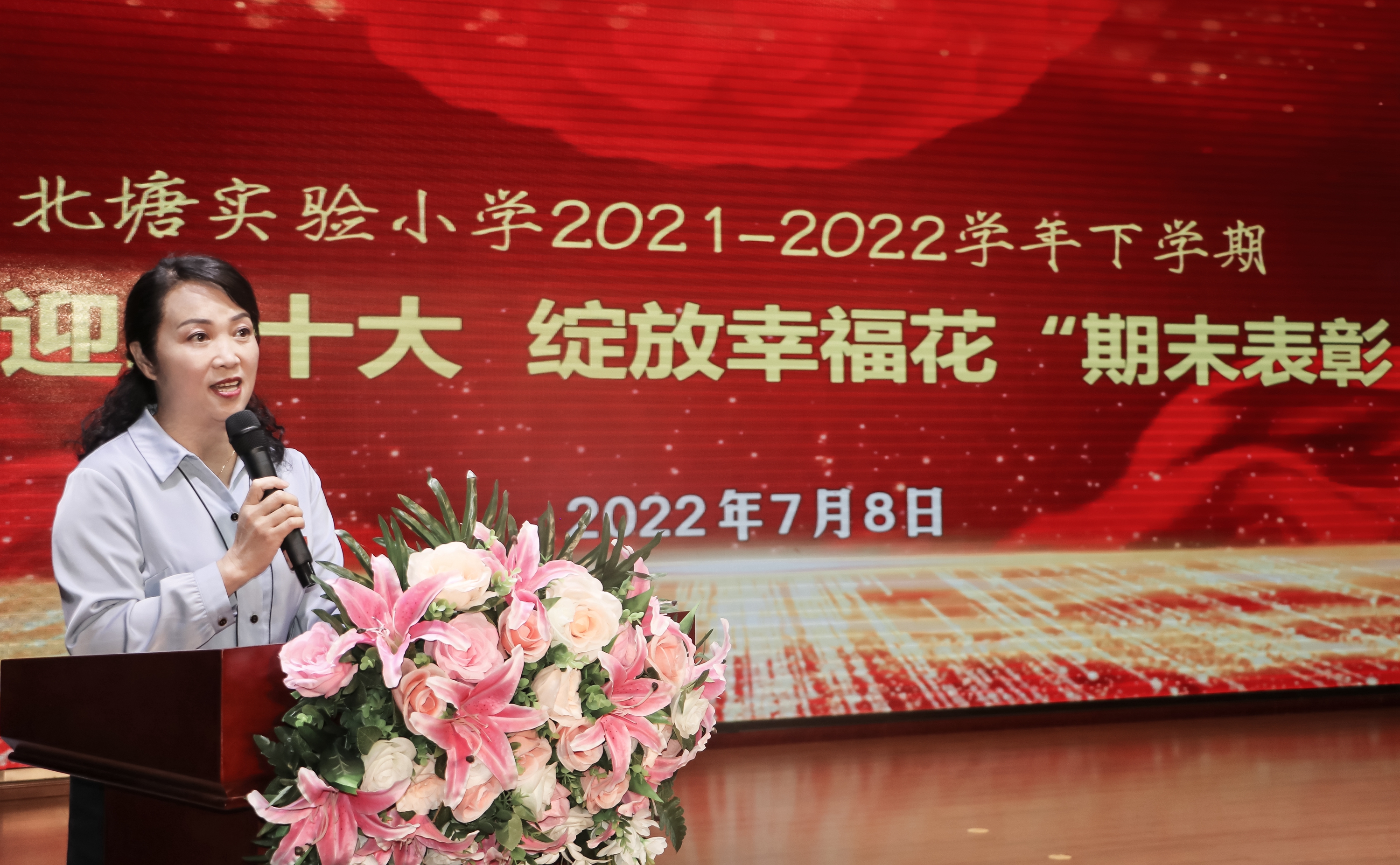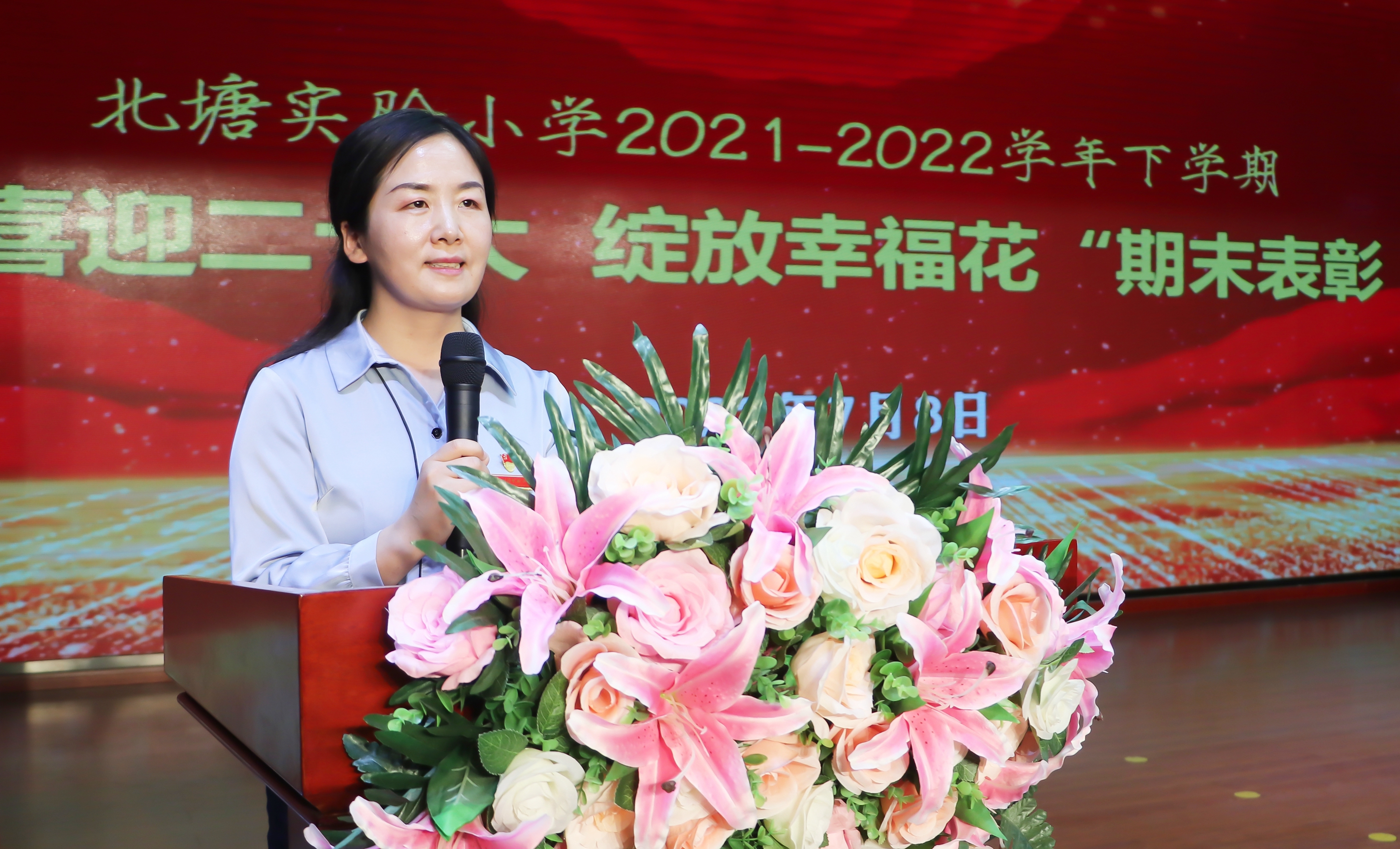 On July 8th, Beitang Experimental Primary School in Linwei District launched a commendation activity at the end of the "Breaking Twenty Blooming Happiness Flowers". Li Xuebin, Deputy Secretary of the Party Working Committee and Deputy Director of Linwei District Education Bureau; Li Qiang, deputy secretary of the Party Working Committee of the District Education Bureau; Li Weijun, member of the Party Working Committee of the District Education Bureau; Guo Feng, member of the Party Working Committee of the District Education Bureau; Member Wang Yuxin. Yang Bin, principal of the People's Center,; Guo Xialiang and Guo Lei, vice presidents of the People's Center School, participated in the event.