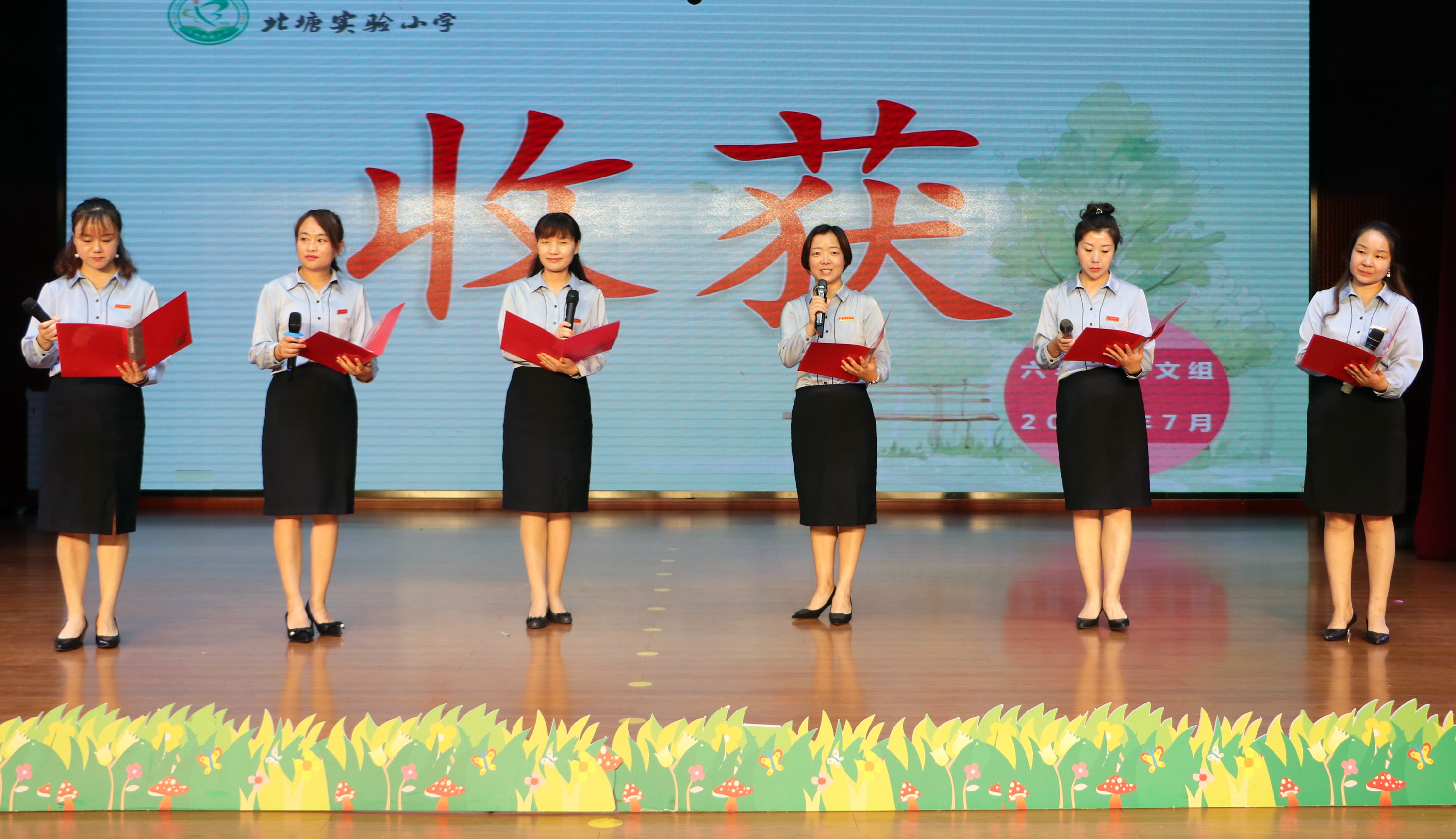 The teachers of the language group of Beitang Headquarters brought the words "Footprints" and sentences to express the love of teachers for students and serious responsibility for work. Starting from spring, to harvest fruit in autumn, from the dream of dreams, letting you start, all the way up, with teachers and students, constantly moving towards progress.