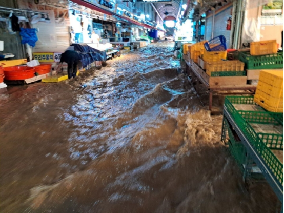 On the 8th local time, a market in Fichuan City, Gyeonggi -do, South Korea was flooded due to heavy rain. Photo from Korean media