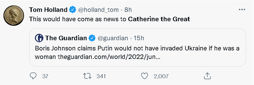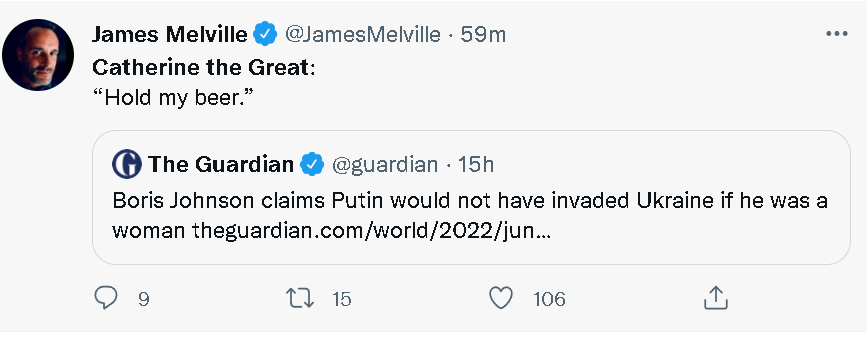 This is because Johnson obviously does not understand the history of Russia and the combat effectiveness of the female rulers in Russian history.