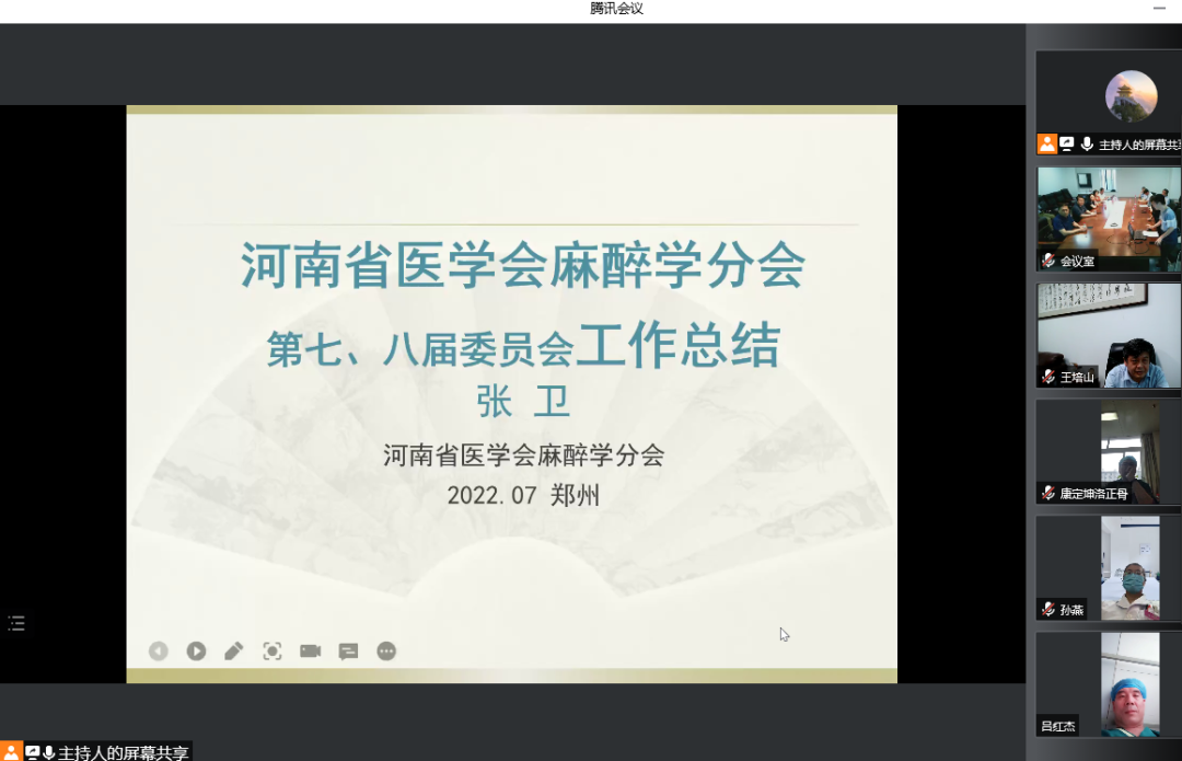 The meeting was held in the form of "online+offline". Zhang Wei, the seventh and 8th committee members of the Henan Medical Association Anesthesiology Branch, Zhang Wei, Chairman of the Eighth Committee of the Committee, Consumer Construction, Organization and Organization of Society, Academic Conference Organization and Foreign Exchange, Discipline Propaganda and Science Poverty Alleviation, Health Poverty Alleviation and Famous Medicine Cultivation, Young Talent Cultivation, Anti -Anti The work of epidemic work and honor reported the work during office. In the past time, the Anesthesiology Branch was united and worked together to hold academic conferences such as the Anesthesiology Conference of the Six Central South Provincial Anesthesia Academic Conference and the Henan Anesthesia Academic Annual Conference. And won a special contribution award from the organizing committee. 2017-2022 China Anesthesia Week Popular Science Popularization activities During the Henan Medical Association Anesthesiology Branch actively responded to the call of the Chinese Medical Association's call through joint initiative, formulating popular science publicity pages, free clinics, and science lectures to expand the social impact of anesthesia.