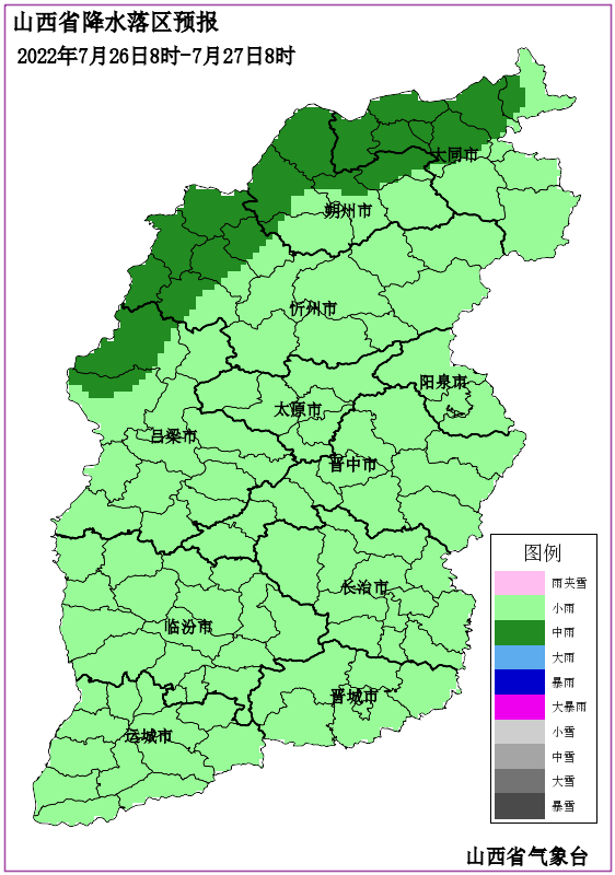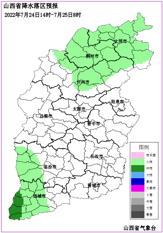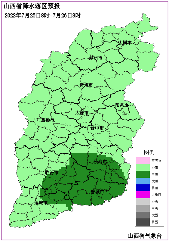 The province is cloudy in sunny days. There are showers or thunderstorms in the northern parts and parts of the south. There are medium rain in some areas of Yuncheng, accompanied by thunderstorms, short -term heavy precipitation and other strong convective weather.