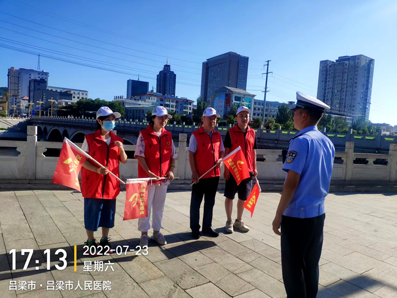In order to help the creation of civilized cities and raise awareness of civilized travel, on July 22 and 23, volunteers of the Luliang People's Procuratorate to persuade the traffic uncivilized behavior during the peak of get off work, and further promote the deepening of civilized transportation volunteer service services. , Help build a good social atmosphere of safe, smooth, civilized, and harmonious road traffic, create a good social atmosphere of civilized traffic participation and sharing everyone shared.