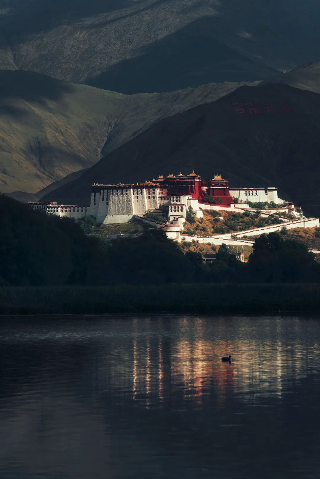 You can also see the reflection in the water of the Potala Palace,