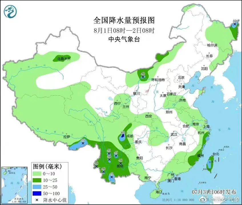 On August 1st, cloudy days in northern Shaanxi, cloudy days in the southern part of Shaanxi, Guanzhong, and southern Shaanxi were cloudy, and there were decentralized showers in some places in the middle of Hanzhong and Ankang. Northern Shaanxi has a southwind of about 4 levels. Part of the parts of the central and eastern parts and parts of southern Shaanxi have high temperatures above 35 ° C.