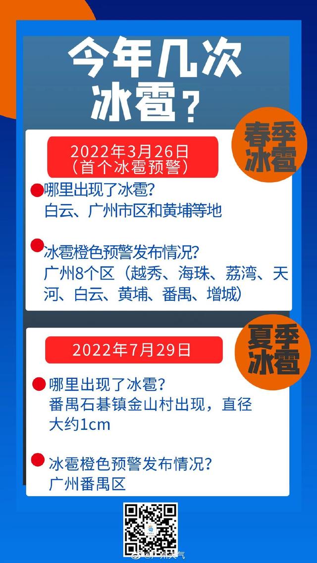Among them, the Meteorological Observatory of the Panyu District of Guangzhou issued a hail orange warning signal at 14:12 on July 30. The hail appeared in Jinshan Village, Shijie Town, Panyu, with a diameter of about 1cm.