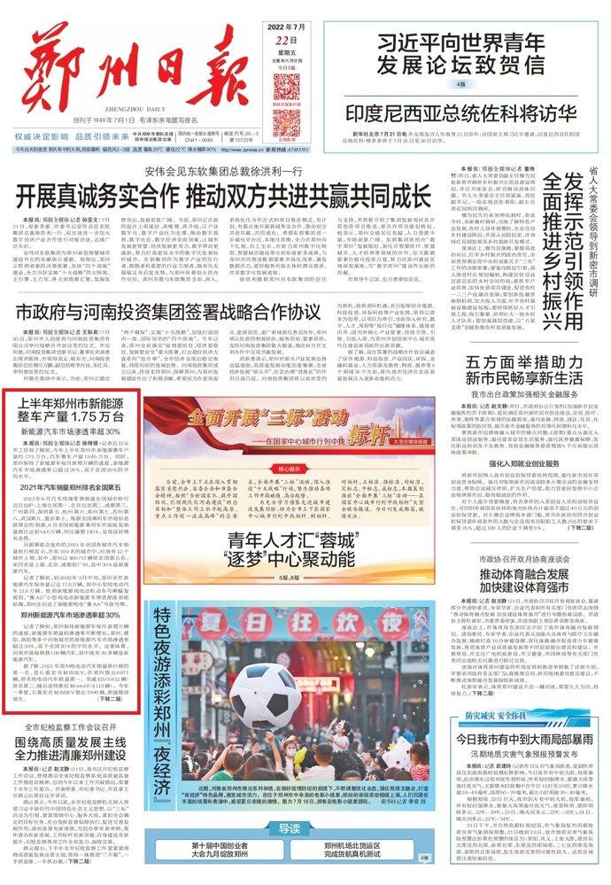 In the first half of the year, Zhengzhou's new energy vehicle output 17,500 new energy vehicle market penetration rate exceeded 30%