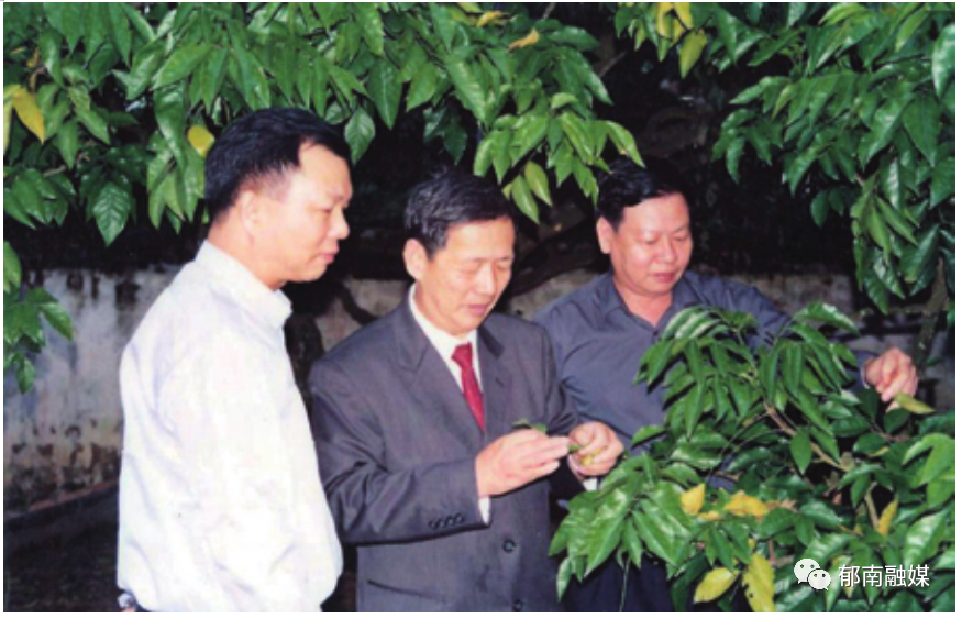 Fu Tingdong (middle), an academician of the Chinese Academy of Engineering, inspected the nuclear yellow skin mother tree (picture source: "Yunan County Chronicle")