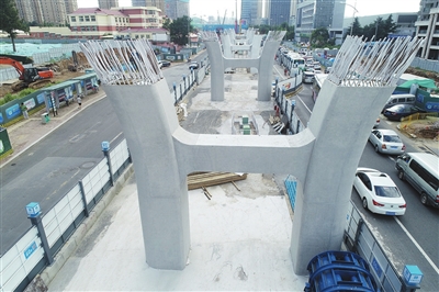 The pile foundation is in place to stand on the bridge surface of the beam. New Chengchong will open the Liaoyang Road Expressway (Fuzhou Road-Haier Road section)