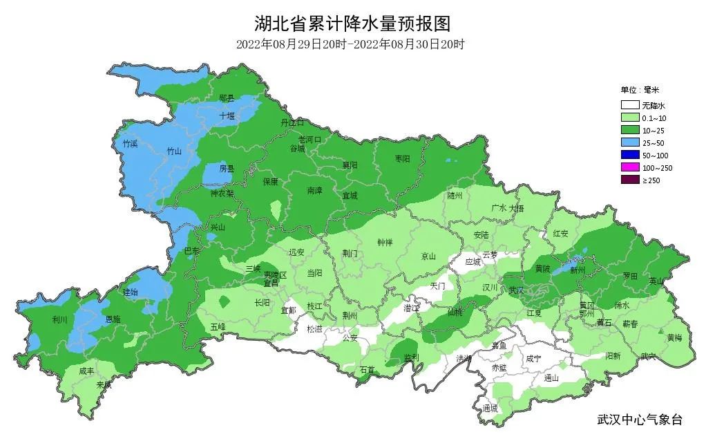 After the 26th, the updoral precipitation increased, and the maximum temperature dropped below 35 ° C. However, this cold air is weak, the warm and humid air balls are strong, the degree of cold and cold has not sufficiently, and the precipitation is small and weak. With the evolution of the circulation, after the cold air forces increased from 29-30 days, Wuhan will usher in a round of strong precipitation, the temperature decreases more obvious, and the maximum temperature will drop to about 32 ° C.