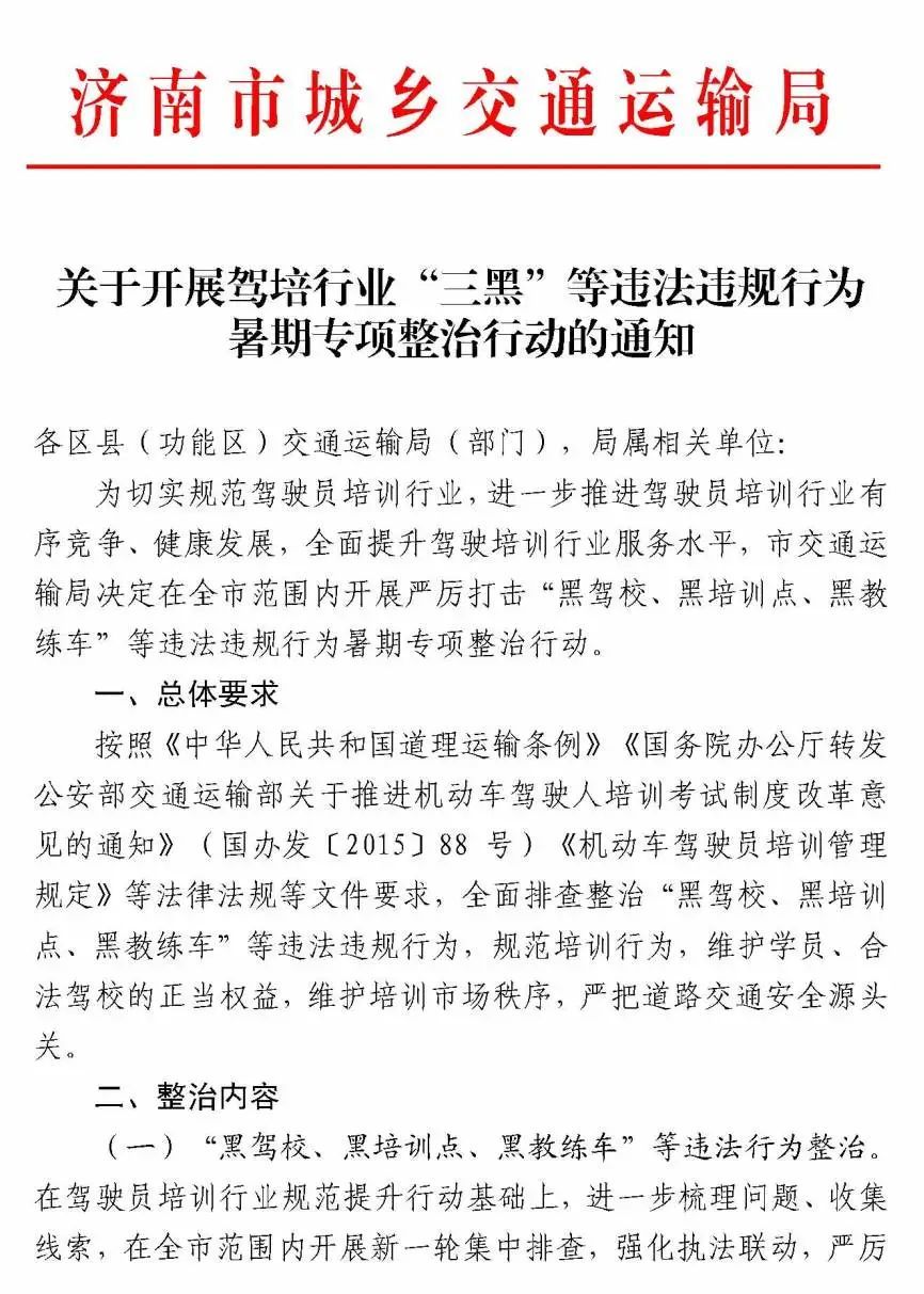 Recently, the Jinan City Transportation Bureau issued the "Notice on the Special Rectification Action for the Summer Rectification of" Three Blacks "such as the" Three Blacks "in the driving training industry", and severely crack down on illegal and illegal issues such as black driving schools and black coaching cars, and standardize industry training.
