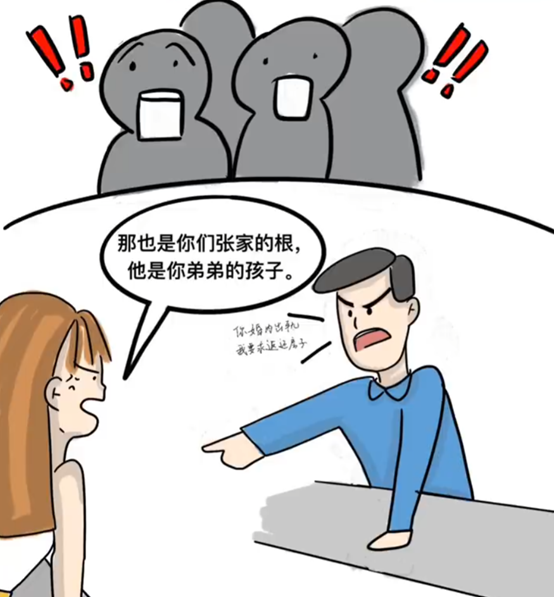 During the court mediation, Liu Mou revealed that Xiao Zhang's biological father was Zhang Jiaqiang's younger brother Zhang Yiqiang.