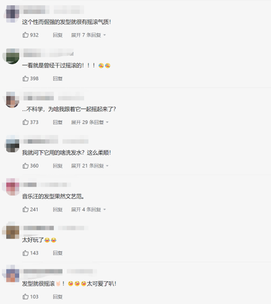 The video screen shows that at the beginning of the music, the dog seemed to be particularly alert, and then began to nod crazy, seeing the "rock fan".