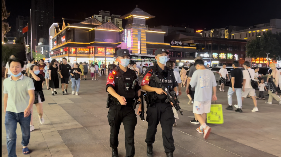 There are more than 300 shops in Huaihe Road Pedestrian Street, Hefei City, and are connected to more than 1,500 merchants in the surrounding 18th streets. The average daily passenger flow is 220,000. Whether day and night, the special police officer guards here every day.