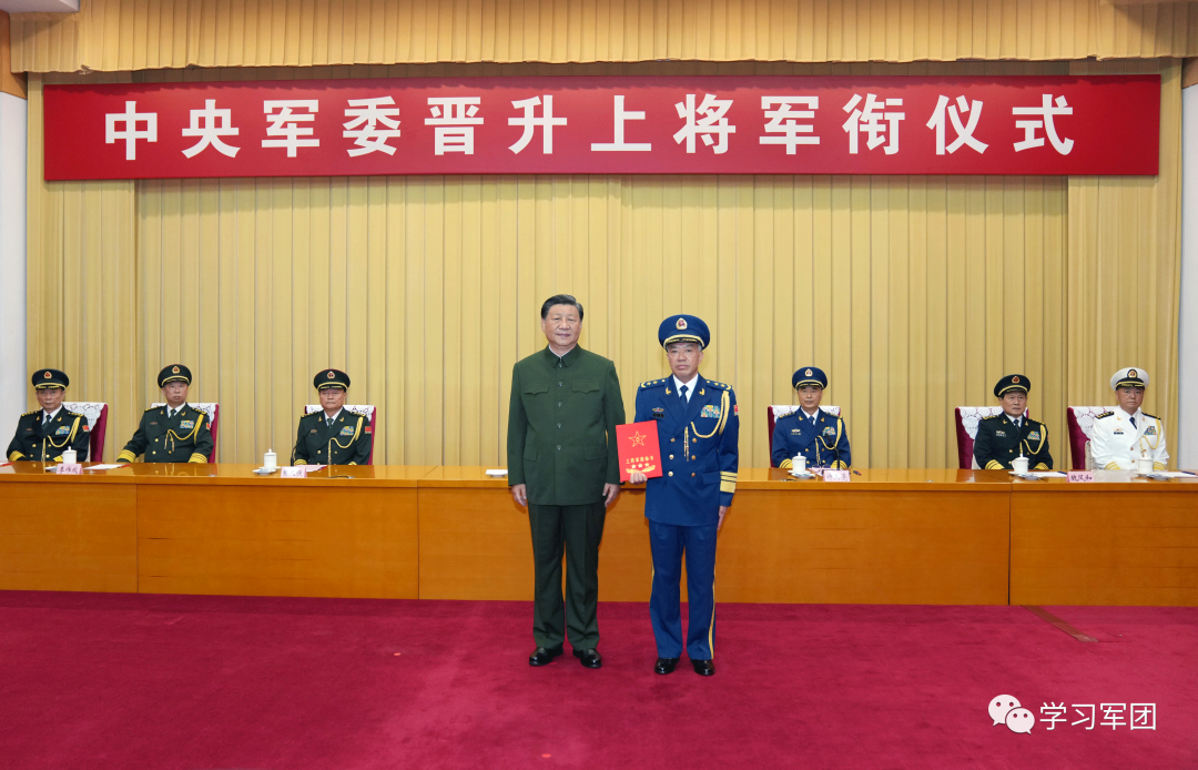 At 11 am, the promotion ceremony began in the solemn national anthem. Xu Qiliang, vice chairman of the Central Military Commission, read out the ranking of generals signed by Xi Jinping, chairman of the Central Military Commission Xi Jinping. Zhang Youxia, vice chairman of the Central Military Commission, presided over the promotion ceremony.
