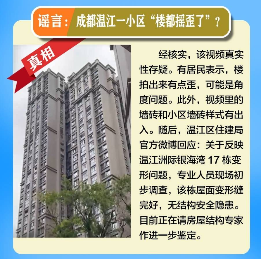 After the earthquake, some netizens posted a video saying that Chengdu Wenjiang "building was crooked."