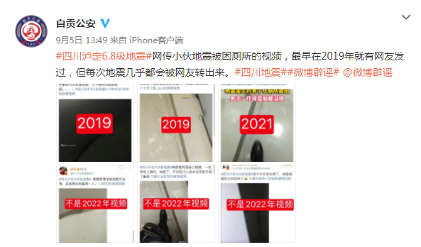 In response, the official Weibo of the Zigong Public Security Bureau of Sichuan Province said that the video of the seismic of the online guy was trapped in the toilet. In 2019, some netizens posted it, but each earthquake would almost be transferred by netizens.