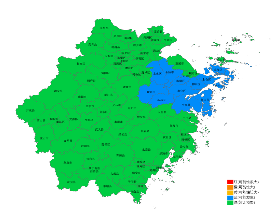 At 17:11 on September 12th, the Provincial Department of Water Resources and the Provincial Infaculture Bureau jointly issued the blue warning of the mountain flood disaster: It is expected to be at 20:00 on the 12th to 20:00 on the 13th, Haishu District, Beilun District, Puzhou District, Fenghua District, Xiangshan County, Ninghai County, Yuyao City, Shangyu District, Xinchang County, Puzhou City, Dinghai District, and Putuo District may occur (blue warning). Please pay close attention to the changes in the weather situation and rainwater, and pay attention to preventing mountain flood disasters caused by heavy precipitation.