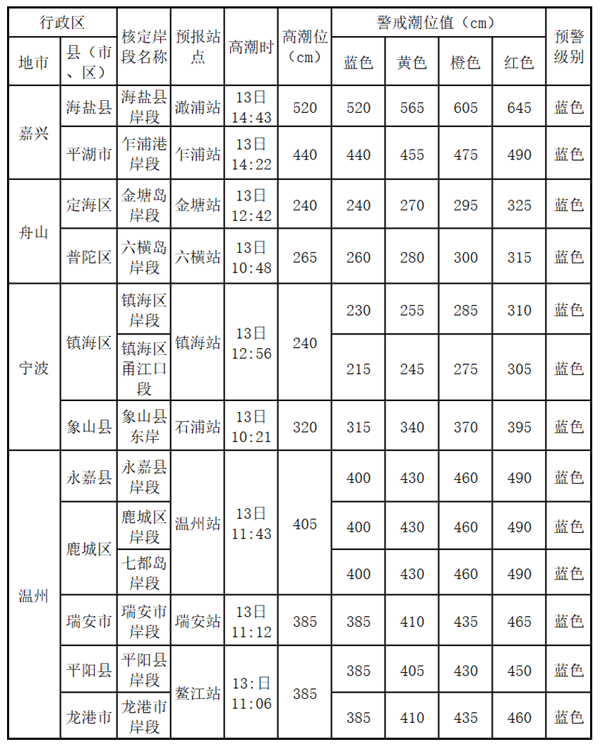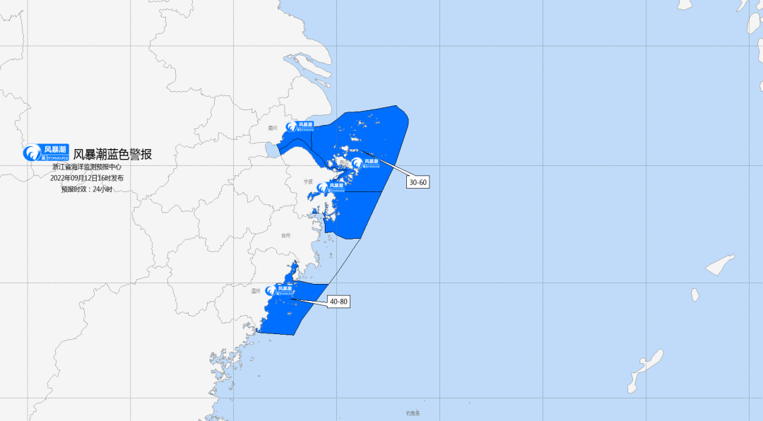 At 16 pm on the 12th, the Zhejiang Provincial Marine Monitoring and Forecast Center launched the storm wave blue alert, and the yellow alarm continued to be maintained.