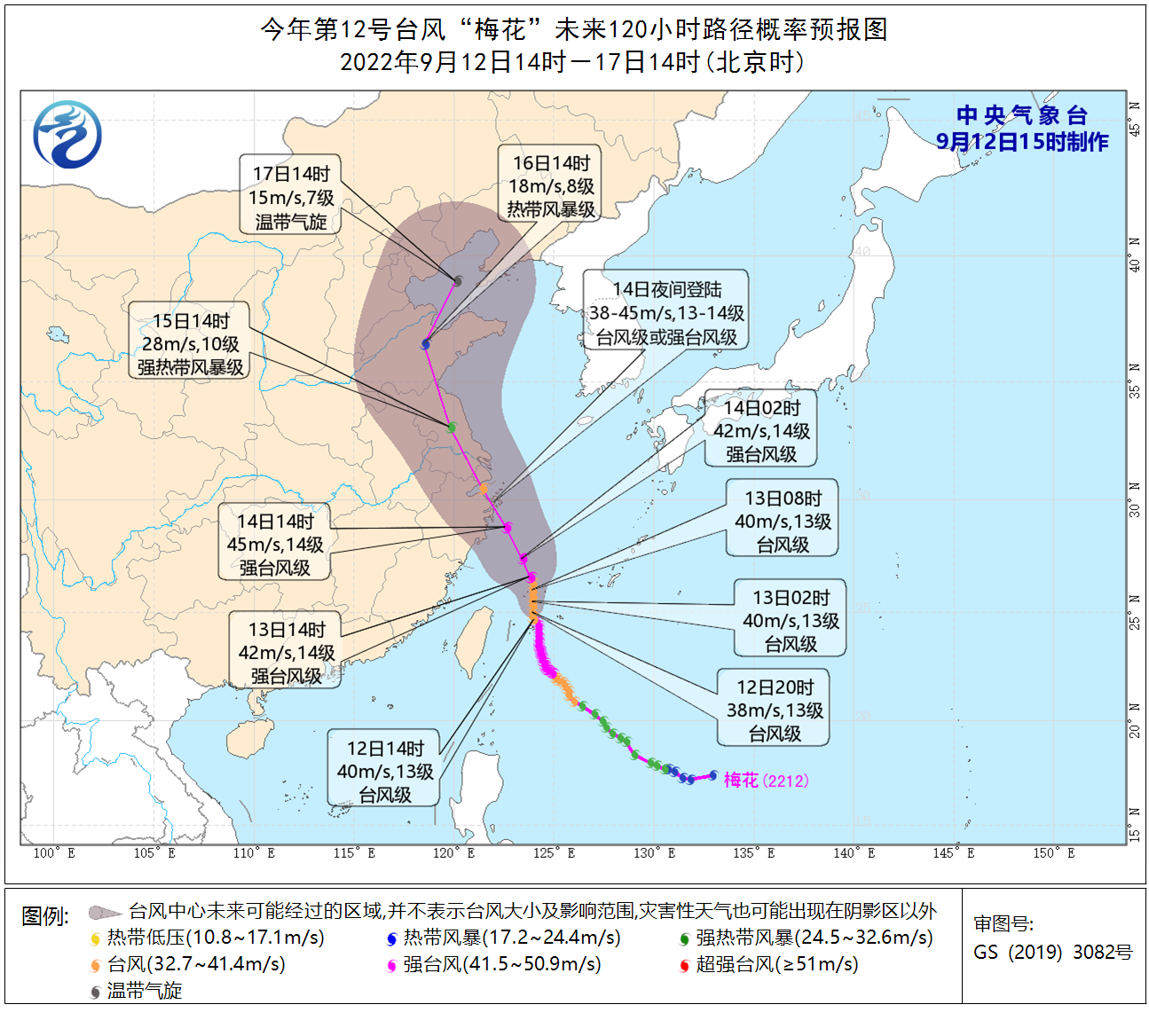 Figure 1 Typhoon "Plum Blossom" mobile path forecast chart