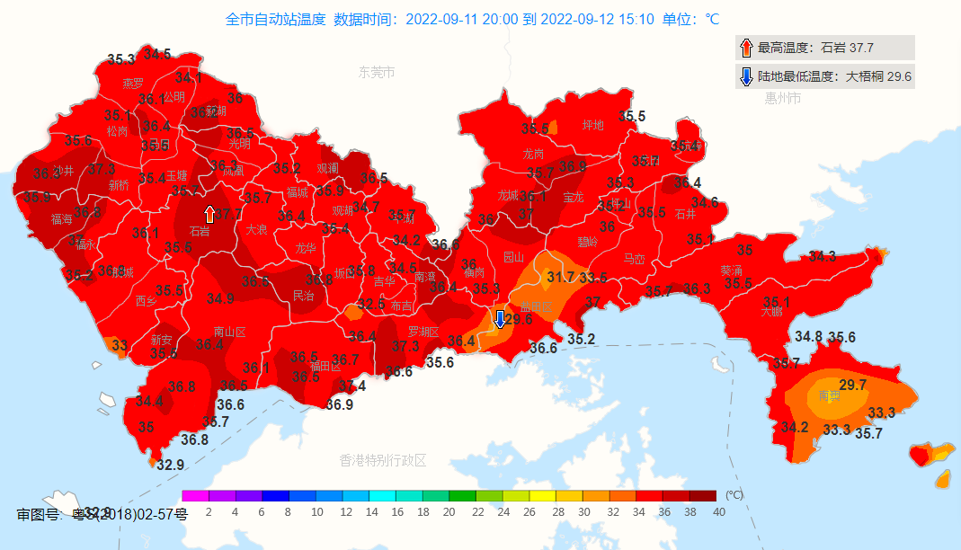 Today (12th), the highest temperature of most parts of the city is above 34 ° C, and Shiyan automatic station in Shiyan Street, Baoan District reached 37.7 ° C. The high temperature of flowing water, "Xia Changzheng".