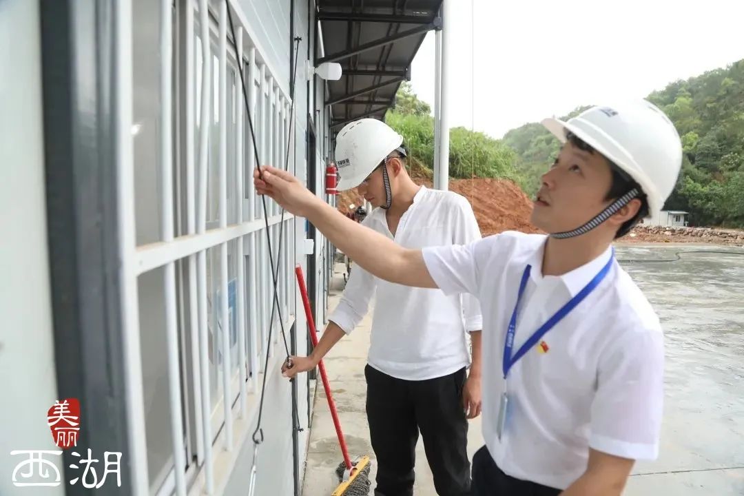 The Engineering Department of the West Lake Investment Group conducted a flood prevention platform inspection on the road engineering project of Baying South Road (Zhennan Road-Shanbei Road), and inspected the waterproof situation of the project distribution box and the reinforcement of activity board houses to make full preparations for the upcoming typhoon weather. During the investigation, the workers dredged the accumulated water points, and at the same time, the excavator was used to strengthen the slope to prevent landscape.