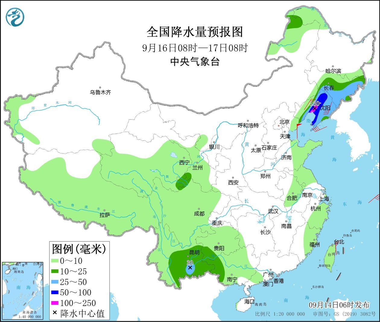 Figure 5 National precipitation forecast map (September 16th to 08:00 on September 16)