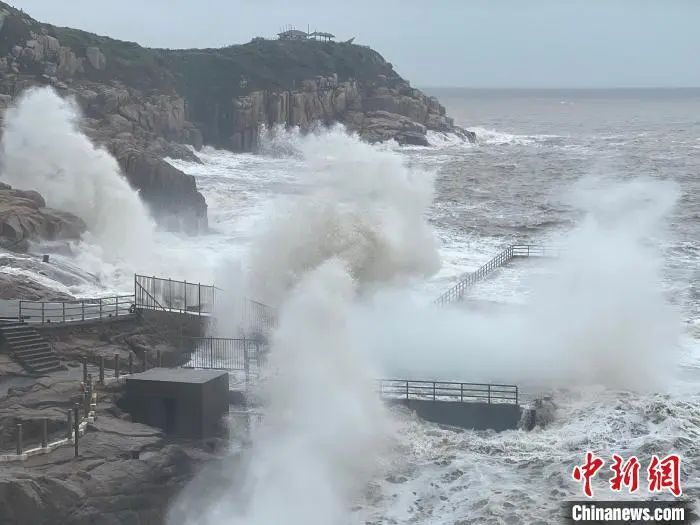 Affected by the typhoon "Plum Blossom", the north of the north of Dongji Temple of Dongji Temple, Zhoushan City, Zhejiang Province set off a giant waves and Shaozhou Tong