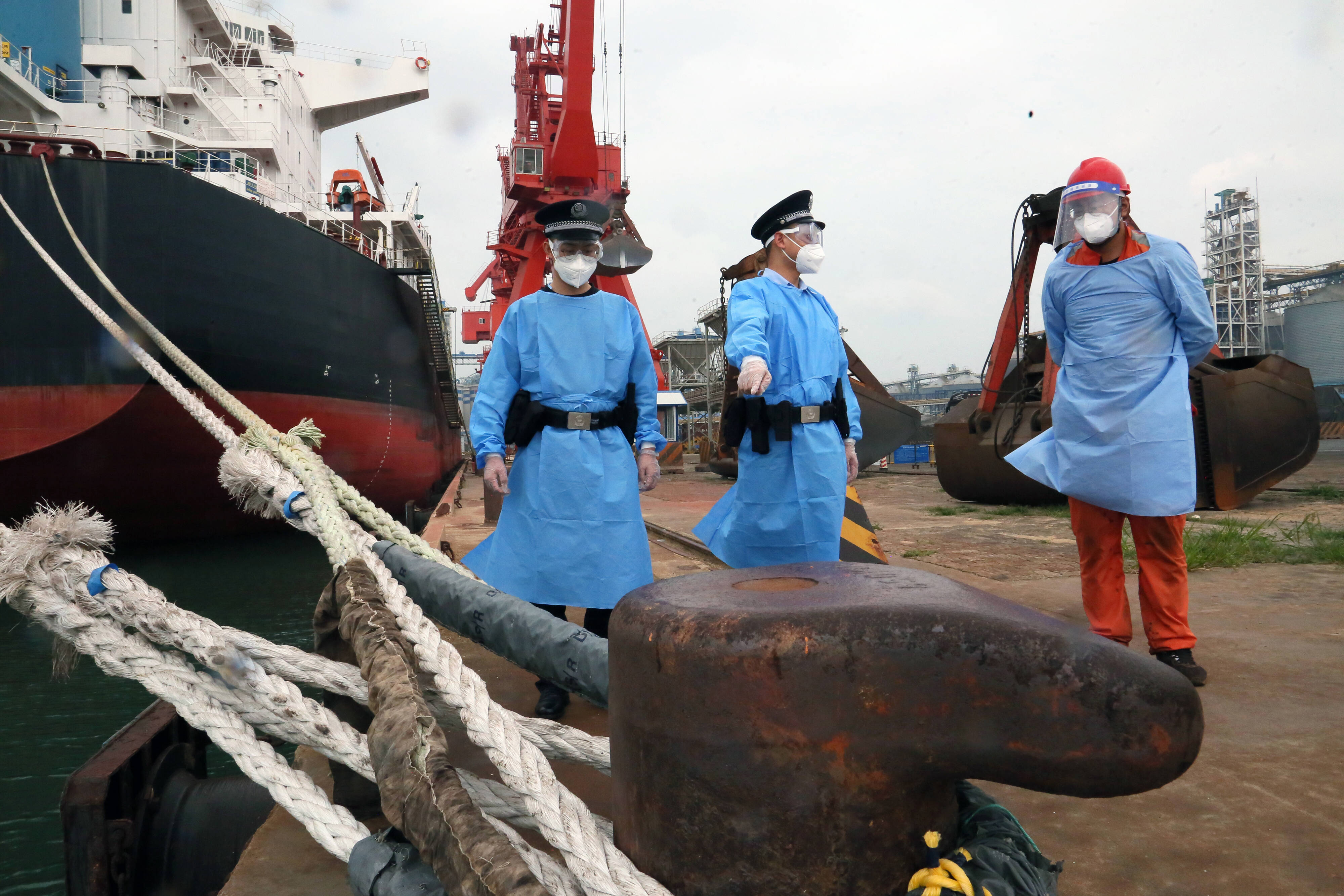 The picture shows the police viewing the safety operation of Hong Kong ships