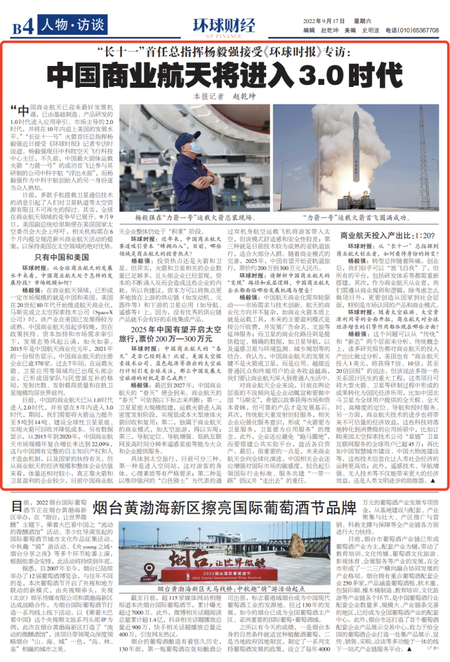 "China's commercial aerospace has ushered in the best development opportunities. The 1.0 era of basic manufacturing and product development has entered the 2.0 era dominated by application traction, market -led, and will catch up with the development level of the United States within 10 years." "Long March 11th "The rocket's first chief commander Yang Yiqiang said in an interview with the Global Times reporter recently. Yang Yiqiang is currently the director of the China Academy of Sciences Air Flying Technology Center. Not long ago, the successful first flight of China's largest solid carrier rocket "Lie Jian No. 1" allowed the company to participate in the development of the company, China Science and Technology, "surfaced", and Yang Yiqiang was founded as the founding of China Science and Technology Aerospace. Another identity of a person is well known to everyone.