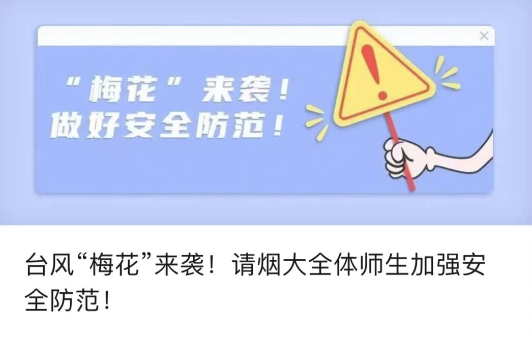 Typhoon is ruthless, there is love in the world. Based on the prediction of typhoon risks, the school fully does a good job of tracking reminders of students and preventing typhoon safety education. The school makes full use of the class WeChat group, QQ group, new media and other platforms to carry out anti -typhoon security education activities. The official WeChat public account of the school issued emergency reminders before the typhoon came on the 15th to enhance students' awareness of prevention and risk aversion.