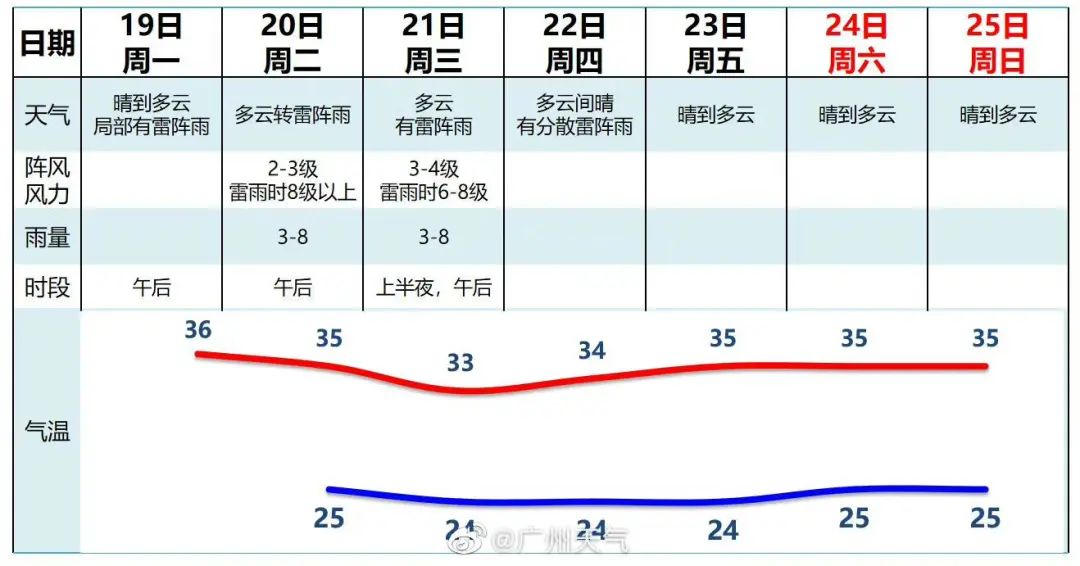 The Meteorological Observatory predicts that from September 19th to 20th, most of the hot and dry weather in Guangdong will be maintained. In the afternoon, some cities and counties have (thunderstorms) showers, local rain, and light-level winds at level 8 or above during thunderstorms.