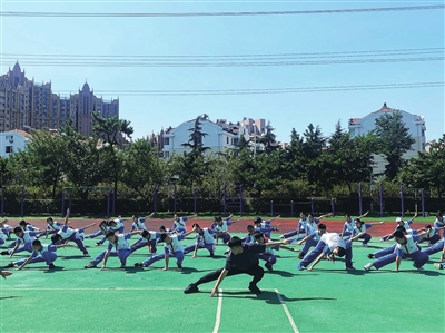 "Return back to the palm, wears the palm of the bow, and stand upright ..." On the morning of the 21st in the morning of the 21st, Li Pengcheng, a Mengxin Sports teacher affiliated to Qingdao University, appeared on time in front of the 23rd class of the first day of the first day. Learning. Born on April 20, 2000, he has no sense of "disobedience" even if he integrates into the student team.