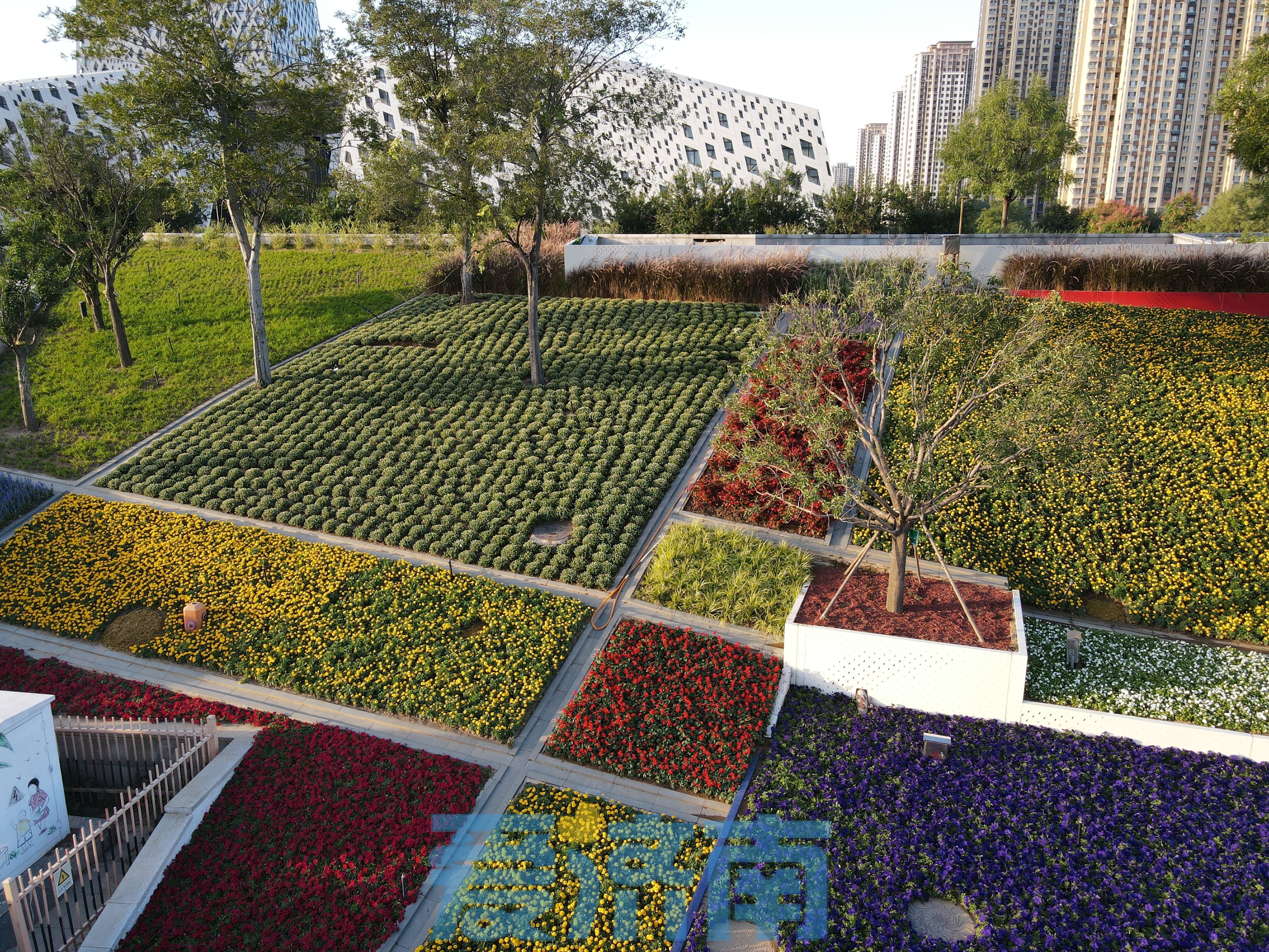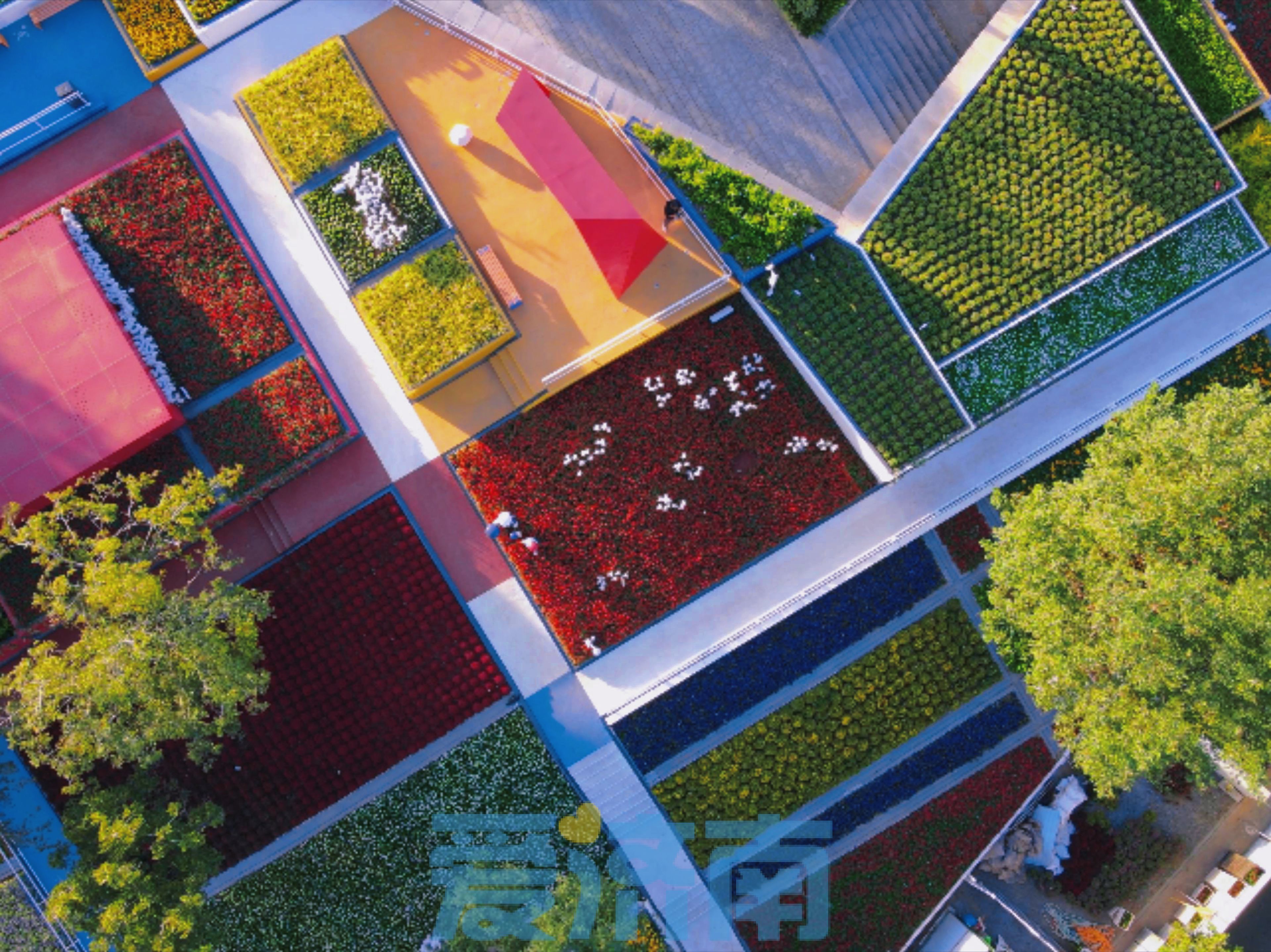 It is understood that the Sanguan Art Garden has been carried out in April this year. The design theme is inspired by Petier Mondrian painting works and integrates leisure functions.The colorful sketches are the color feelings of the original painting, which achieves a good effect of taking into account the three main viewing angles of people's perspective, bird's eye view, and entering the tour.