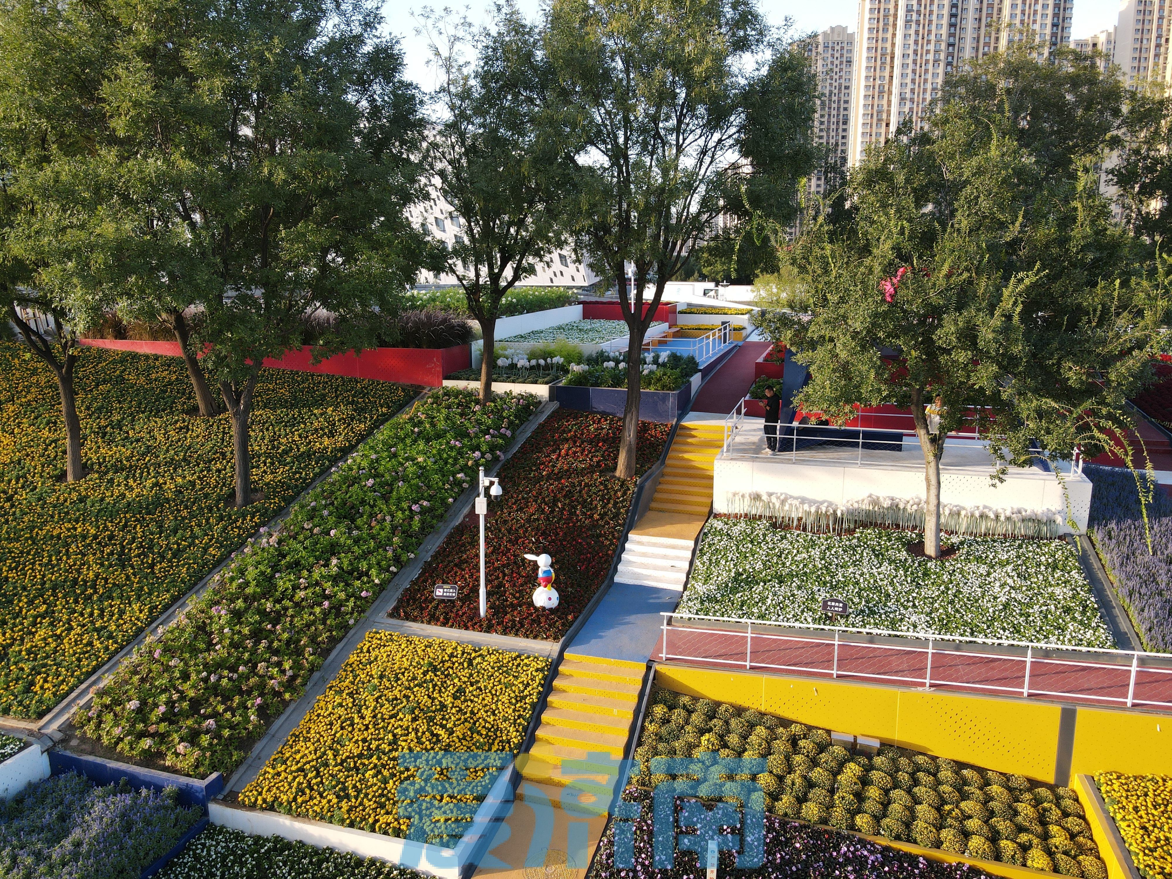 The garden mainly uses more than 20 plant varieties in a total of 170,000 pots, mainly red, yellow, blue and white.Through the combination of different flower varieties, the careful configuration of garden sketches, and the organic combination of colorful garden roads have created a colorful urban aesthetic space for citizens to play and appreciate.