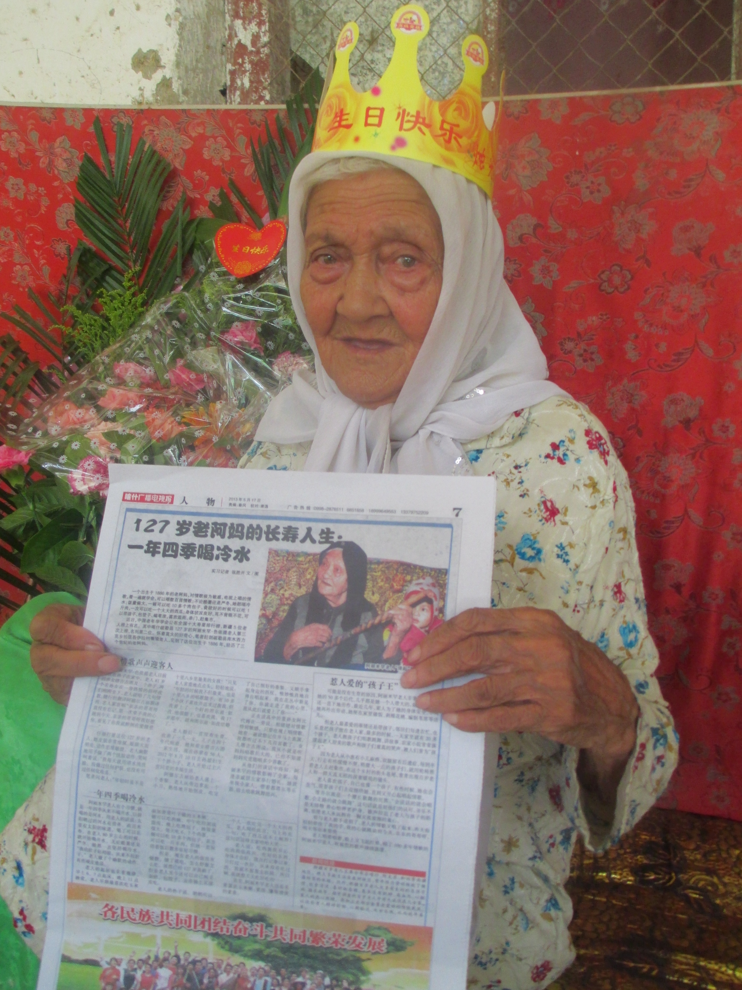 "The towering Kunlun Mountain, Xiangfei, Shule County, there is a long -lived old man, Almyhan, she was born in 1886 ..."